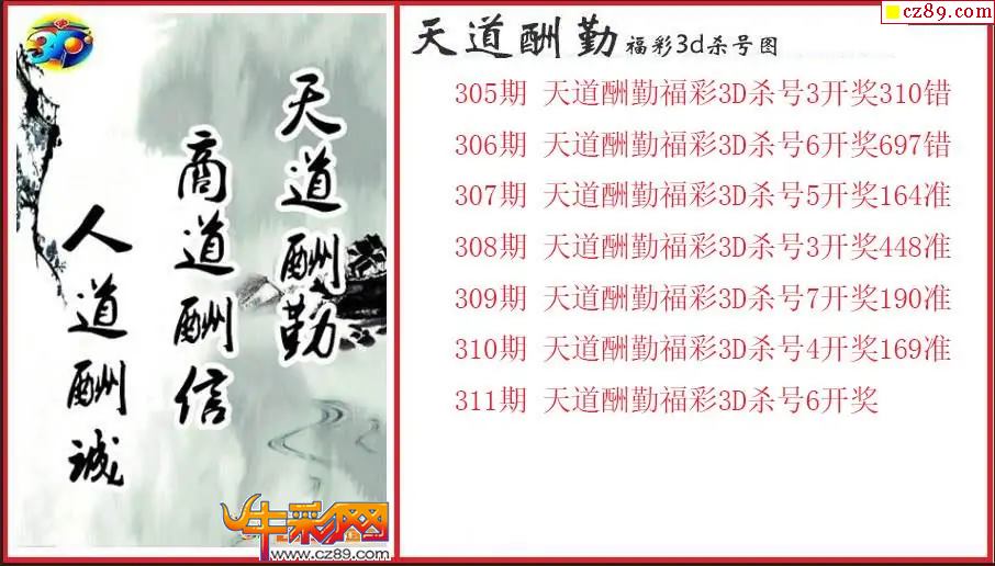 > 25年311期3d 天道酬勤杀号图